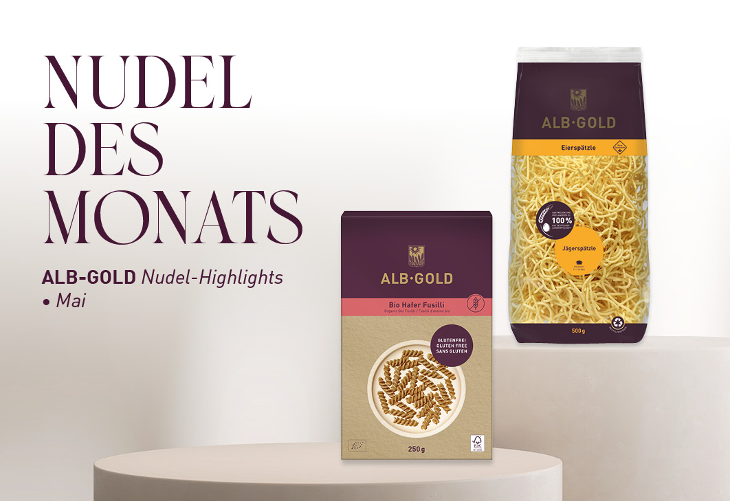 ALB-GOLD in Trochtelfingen steht nicht nur seit jeher für riesige Nudelvielfalt, sondern auch für Qualität und Verantwortung. Unsere Produkte werden ohne Gentechnik hergestellt und der Anteil unserer Bio-Produkte wächst stetig. Zudem liegt uns das Thema Nachhaltigkeit sehr am Herzen, weshalb wir unter anderem unser Bio Pasta und unsere Bio Dinkel Nudeln in Papier verpacken.